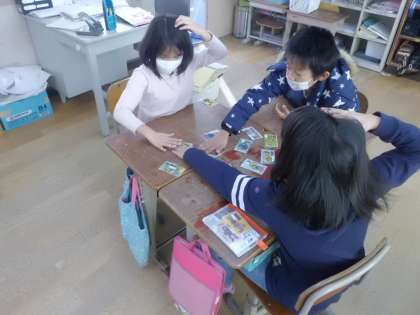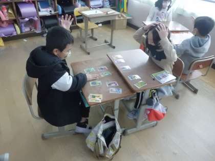 今週はあいあい週間では,韓国・朝鮮の遊びについて学びました。ハングルかるたを行い,楽しみながら文化に触れることができました。