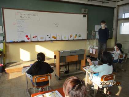 外国語活動で,ブロフィー先生とUnit5の学習をしました。「what do you like?」「I like 〜〇〇」と何回もやりとりをするうちに,英語を使って上手に話すことができるようになってきました。次の学習では,友達の好きな食べ物やスポーツなどを予想して答える「わたしは誰でしょうクイズ」に取り組みます。