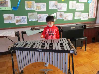 鉄琴を演奏するのは,初めてという子たちが多く,初めての音色,経験に興奮していました。