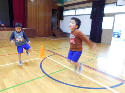 最初は寒くてぶるぶる震えていた子どもたち。それでもラジオ体操やランニングをしたりなわとびをしたりするうちに,少しずつ温まってきました。