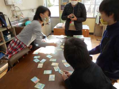 みなさんはお正月にどんな遊びをしましたか。くすのきではけん玉,こままわし,かるたをして遊びました。