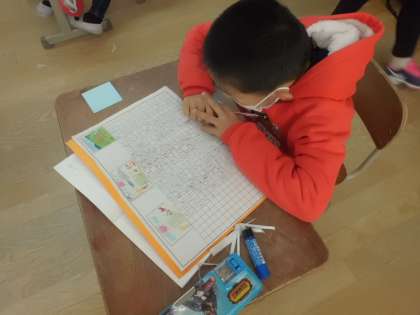 国語では,物語を書く学習をしています。本日は,書き上げた物語を読み合いました。友だちの作品を読んで,面白いところやいいなと思うところを見つけました。上手に物語を書くことができました。