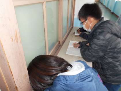 家庭科の「物を生かして住みやすく」で,掃除の仕方や手順について学習をしています。前の時間には実際に掃除の仕方や手順を確認しました。今回は教室や学習室,廊下や階段のどの部分が特に汚れがひどいかを班で調べました。いつもあまり掃除ができていないところがたくさんあることに気付いていました。その後,班ごとに掃除したい場所を決めて,どんな道具が必要か,そのように掃除をするのかを考えました。