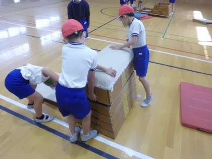 とびばこあそびの学習も5時間目を終えました。子どもたちの準備をするスピードが格段に早くなりました。そのために跳び箱に取り組む時間が長くなりました。みんなで協力して取り組んでいるからこそだと思います。
