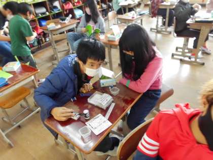 結果をまとめる際,自分の結果と周りの結果が違っており,多くの意見が自分とは違っていたため,考察を改めるということをしていた児童もいました。