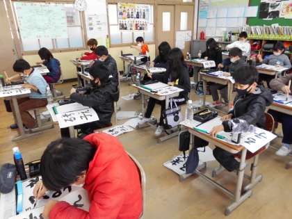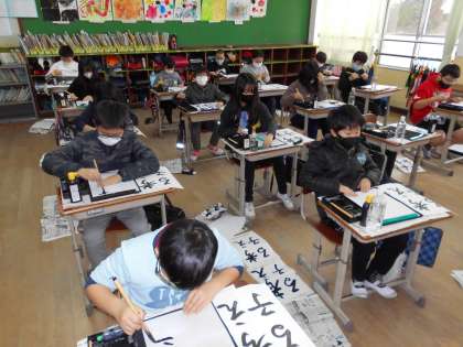 早いもので,書写は学年のまとめに入りました。今まで学習したことを思い出しながら「考える子」という字を書きました。ひらがなと漢字の大きさの違いや筆遣いなど様々なことを意識しながら書いていました。
