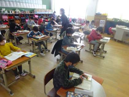 みんなで読んだり自分で線を引いたりして読み取っています。