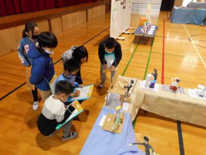 体育館へ図工展の作品の手直しをしに行くと,2年生が鑑賞していました。