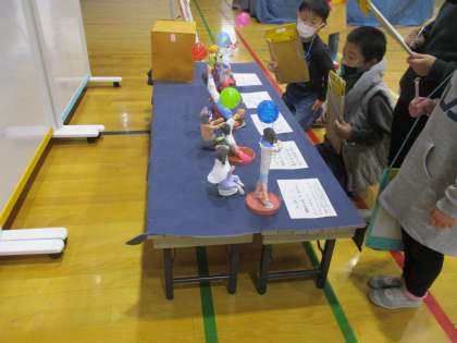 仲のいいお兄さん,お姉さんの作品を探したり,どの作品が素敵かなと1つ1つ作品をのぞきこんでいたりと鑑賞を楽しんでいました。