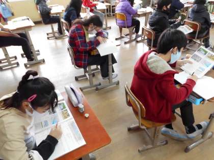 社会では「自然災害を防ぐ」という学習をしています。日本には地震災害・津波災害・風水害などたくさん自然災害が起こります。自然災害の被害を少しでも減らすためにどのような取り組みをしているかを教科書で調べてノートにまとめました。子どもたちはいろいろな取り組みをしていることに気付いていました。
