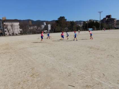 体育科の学習は,サッカーです。緊急事態宣言の解除に伴って学習においても,できることがふえました。サッカーも,パスやドリブルだけでなく,互いに気をつけ合うことで,ゲームができるようになりました。早速,4年生も,対戦型のゲームをすることができました。足でのボール操作はまだ慣れませんが,パスをし合ってシュートする楽しさを味わいました。