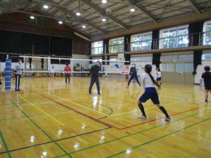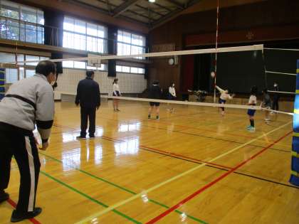 今日は,部活動最後の日として,6年生と教職員で最後のバレーボールを楽しみました。