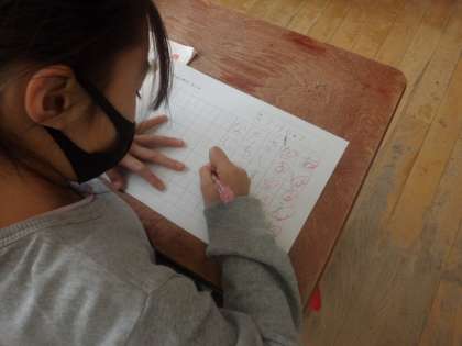 書写の学習で、ひらがなの復習をしました。子どもたちのひらがなを見ていると,書き順が間違っていたり,バランスが悪かったりすることがよくあります。丁寧に,バランスや書き順に気を付けながら,ひらがなを復習することができました。