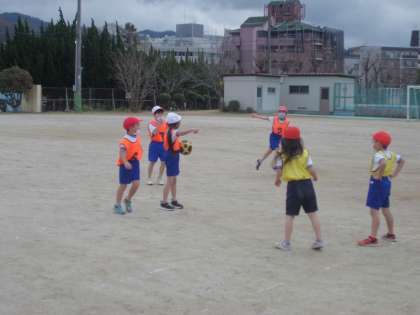 体育の学習では,パスゲームをしています。どうすればたくさんの得点を取ることができるのかを考えながら試合をしました。まだまだ始めたばかりなので,これからもっと作戦を考えてたくさん点を取れるようになればいいなと思います。