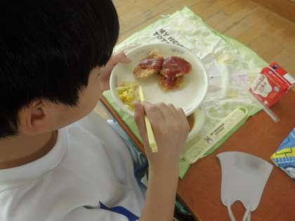 卒業お祝い給食でした。年に一度のヒレカツの日です。昨年度は,食べられなかったので,2年生の子どもたちは,給食で初めてヒレカツを食べました。心の中で6年生の卒業をお祝いしながら,初めてのヒレカツをおいしくいただきました。