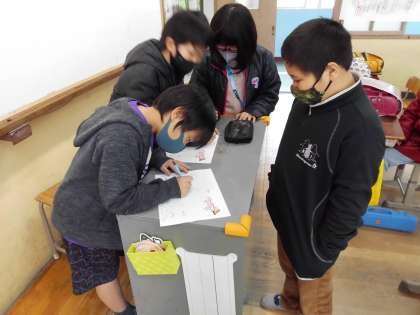 棟別集会がありました。各班で新しいブロック長・登校班長・登校副班長を決めました。来年6年生になる5年生がたくさんリーダーとなります。早速,新1年生のために5年生が中心になって登校班の集合場所などを書いた手紙を書きました。立派なリーダーになってくれるはずです。