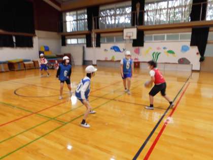 体育の「バスケットボール」の学習が進み,たくさん試合を重ねて,チームの様子がつかめてきました。「シュート!」「後ろにパス!」「ナイスカット!」などとたくさんのアドバイスや前向きな声かけが聞かれます。チームが勝てるように作戦を話し合う姿も見られています。