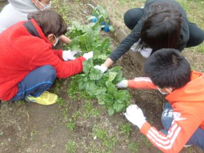育てていたホウレンソウを収穫しました。大豊作とまではいきませんでしたが,立派なホウレンソウができました。持ち帰ったホウレンソウは,お家の方に料理してもらったようで,子ども達が朝からおいしかったと報告してくれました。