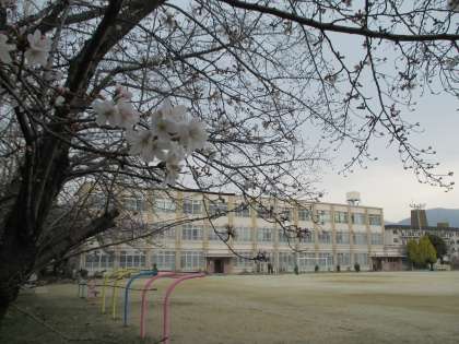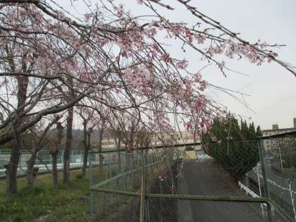 醍醐寺からいただいた枝垂れ桜,運動場と中庭のソメイヨシノ