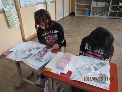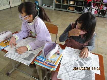 社会科「事故や事件をふせぐ」では,校区のきけんな場所について考えました。「道が狭くてカーブしているから危ない。」「信号がないから危険。」「車の量が多くて危ない。」など,校区地図を見ながらきけんな場所について話し合うことが出来ました。