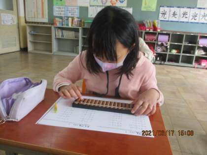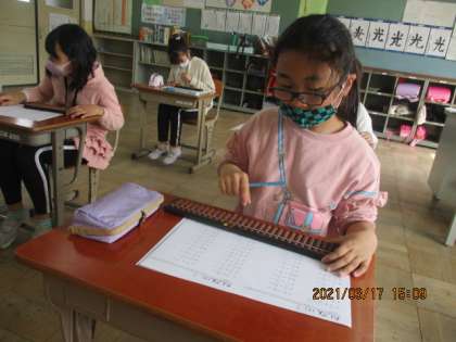算数「そろばん」の学習では,黙々と珠をはじく姿が見られました。繰り上がりや繰り下がりのある計算もささっと指を動かして計算することが出来ています。「そろばんって筆算でノートに書くよりも簡単!」「楽しい!」とそろばんの良さも感じながら学習しました。