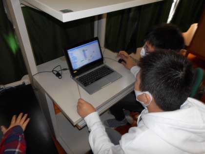 「わくわく算数ひろば」の中の「算数ラボ」という学習をしました。図形をかくプログラムをつくって,正多角形をかきました。正方形や正三角形をかくことに挑戦しました。どのようにプログラムすれば正方形や正三角形がかけるかをグループで考えながら,パソコンに打ち込んでいろいろ試してみました。