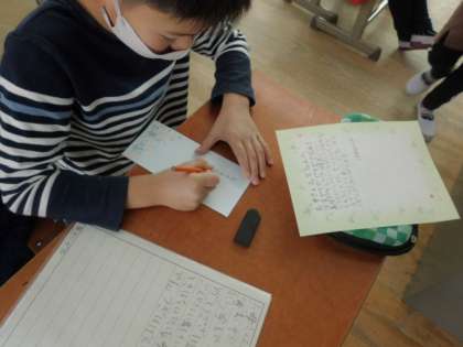 生活科では,自分史をまとめる学習をしました。調べている中で,家族への感謝の気持ちに改めて気付くことができました。そこで,日ごろはなかなか伝えられない感謝の気持ちを手紙にしました。家族のみなさま,楽しみにしていてください。