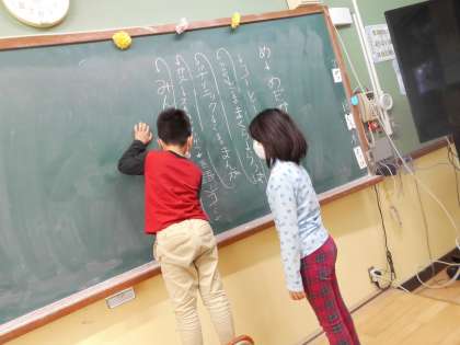 チーム対抗しりとりあそびをしました。勝負は…引き分けでした!