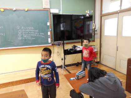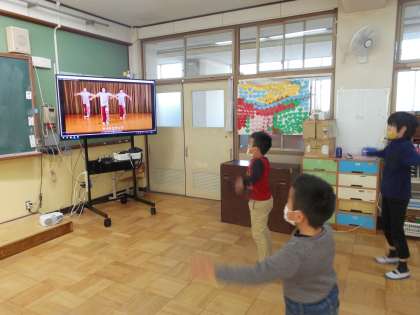 子どもたちは大きな画面を見ながら