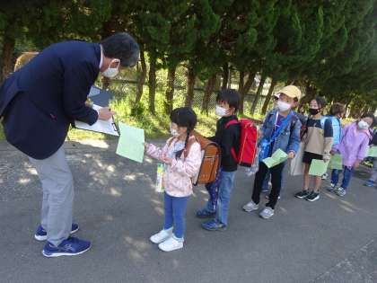 お兄さんやお姉さんに連れられて,安全に登校できました。