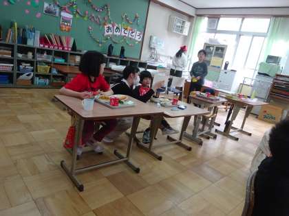 自分たちで給食当番もしました。