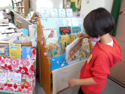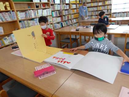 図書館での約束を話し合たあと,読んでほしい本や自分で読んでみたい本を