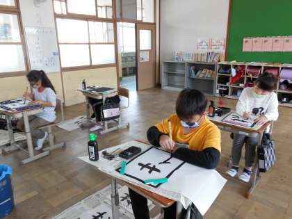 今年度初の書写の時間でした。点画「横画」「たて画」「はらい」などの書き方や点画の筆使い・穂先の向きや通り道に気をつけて,集中して書きました。