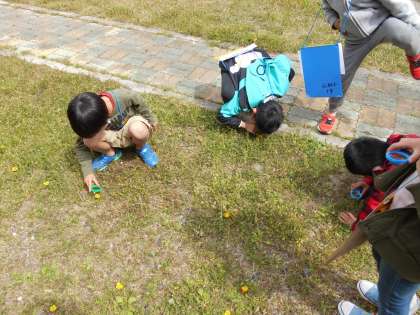 今日は,観察したセイヨウタンポポの特徴を観察カードに記録しました。虫めがねでのぞき込んだり,友だちと教え合ったりして,色や形を記録していました。