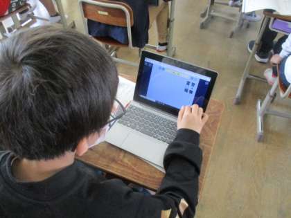 国語の「漢字の形と意味」の学習をしました。漢字の形が同じ部分があると,読み方も同じになっていることがあるが,意味は違うということを知りました。(例えば,求と球)そこで,同じ部分が含まれる読み方が同じ漢字を集めて文を作り,クイズを作りました。