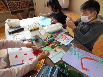 身近に聞こえる音から形や色を想像し,絵をかきました。食べ物を食べる音や風の音など,音から感じることを楽しそうに絵に表現していました。
