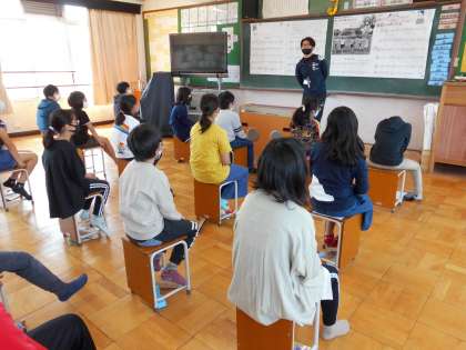 5年生になり,音楽の時間に中学校から来られる先生に教えていただく時間があります。教室に入ってこられたら「あの人はいったい誰だ?」と興味津々の5年生。