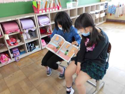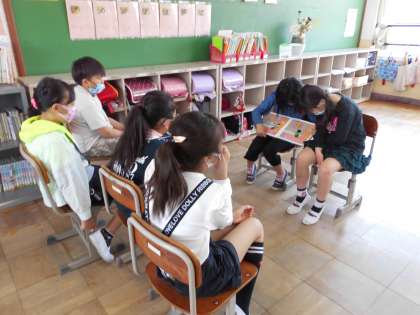 本係さんが読み聞かせをしてくれました。今日の本は「ふしぎのおうちはドキドキなのだ」でした。主人公マサヒコは,おばあちゃんの家がこわい。というのも,こわい置物や不思議なしかけがたくさんあるから…。本係さんが読むお話をみんな真剣に聞いていました。
