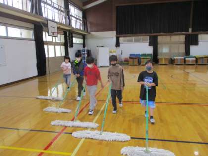 最高学年は任されている掃除場所が多いです。体育館では,きれいにモップがけをしました。これからも学校のいろいろなところをきれいにしていきましょう。