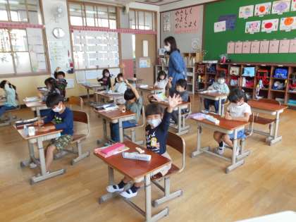 全体で,大きさ比べをしたり,担任が手を打った数の数字カードを選んだりしました。