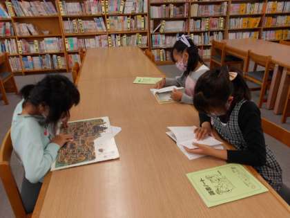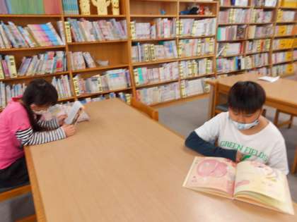 毎週金曜日はブックレンタルデーです。1週間のうち必ず1回は図書館へ行って本を借りています。みんな図書館へ行くのが大好きです。図書館司書の先生がくださった図書館しりとりをしたり,本を読んだりして過ごしました。
