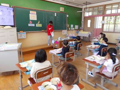 今月の生活目標を6年生が伝えに来てくれました。