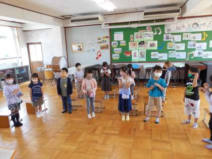 歌うグループとカスタネットでリズムを打つグループに分かれて,じゃんけんぽんの歌を楽しみました。