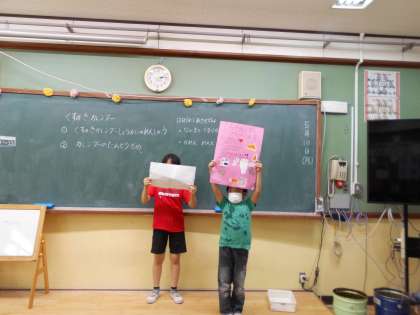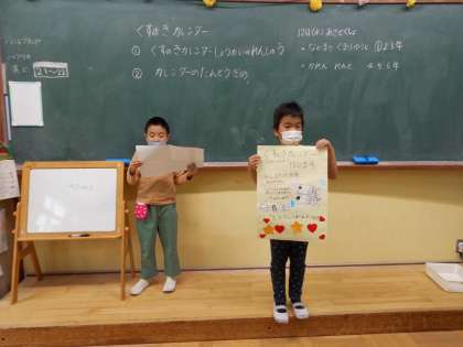1〜6年の教室にくすのきカレンダーのことをお知らせに行くことになりました。ペアを組んで練習をしました。1年生はほかの学年の教室に行くのは初めてなので,ちょっとドキドキです。上級生のサポート,よろしくお願いします!