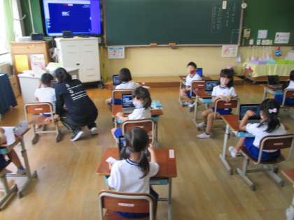 朝,各教室を回っていると,1人1台のGIGA端末を使ったり,学習用コンテンツを使って授業を進めている学級がいくつもありました。