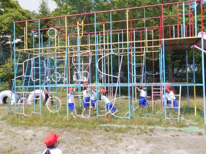 リーダーが先頭になり,くぐったり,ぶら下がったりして探検を楽しみました。