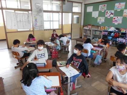 「お寺は学校から見て西にある。」など,どの方位に何があるかということをノートにまとめていきました。地図の読み取りが少しずつできるようになってきています。