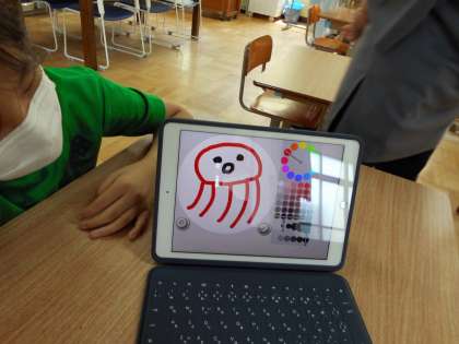 ビスケットで描いた絵を,スクリーンショットで撮る練習をしました。ビスケットは2回目の学習なので,だいぶ慣れてきたようです。自分たちが描いた絵を写真にとって保存しました。少しずついろいろな使い方ができるようになってきました。