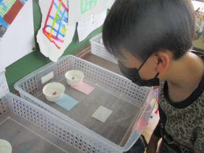 その中でも全員が絶対必要と意見が一致した「水」について調べてみることにしました。どうやって調べたらいいかも話し合いながら実験の準備をしました。さて,どんな結果になるのでしょうか。楽しみですね。