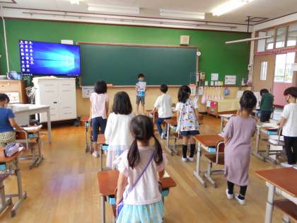 朝の会の司会や授業の挨拶など,日直の仕事に取り組んでいます。